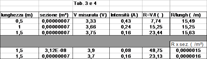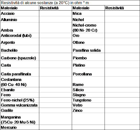 Per alcuni valori della resistività si vedano i valori in tabella nella sezione CURIOSITA'.