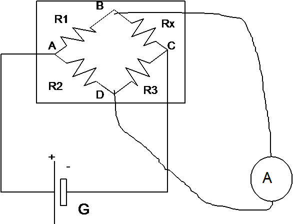 IL PONTE DI WHEATSTONE: le misurazioni di resistenza più accurate si eseguono con un galvanometro inserito in un circuito chiamato ponte di Wheatstone, dal nome del fisico britannico Charles Wheatstone. Il circuito è costituito da tre resistenze note e una resistenza incognita, collegate fra loro in forma di rombo. Fra due angoli opposti del rombo si applica una differenza di potenziale continua e fra gli altri due angoli si inserisce un galvanometro. Se tutte e quattro le resistenze sono in rapporto fisso fra loro, la corrente che scorre nei due bracci del circuito è uguale e il galvanometro non segna passaggio di corrente. Variando il valore di una delle resistenze note, si può equilibrare il valore di una resistenza incognita, calcolandone poi il valore da quello delle altre resistenze.