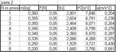 Nella seconda parte si effettuano sempre 10 prove solo che al posto di far variare la forza si fa variare la massa del carrelino.
