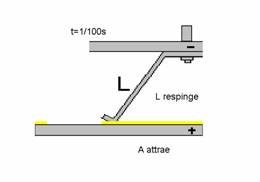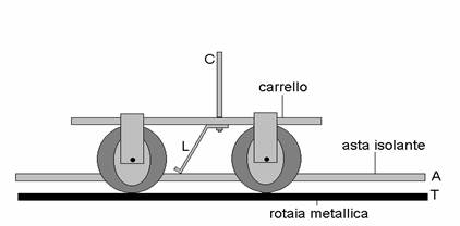 Un'asta di materiale isolante (A) è appoggiata ad una rotaia metallica (T). A cavallo dell'asta A può scorrere un carrello metallico dotato di una lamina metallica (L) destinata a strisciare, con attrito molto ridotto, sull'asta stessa.