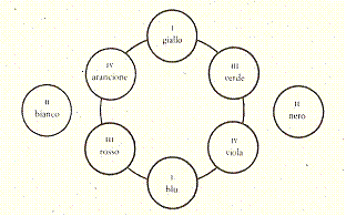 Alla fine della panoramica sui colori, Kandinsky dispone i tre primari e i tre secondari in posizione opposta lungo una circonferenza, simbolo di infinito e di eternità, al di fuori della quale figurano il bianco e il nero che simboleggiano il silenzio della nascita e della morte.