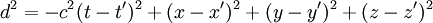 Un invariante è la carica elettrica. Sebbene la massa di un elettrone aumenti con la velocità la sua carica rimane invariata. Ma c'è un'altra quantità la quale rimane invariante. Questa è l'intervallo spaziotemporale, una sorta di distanza quadridimensionale, non tra due punti nello spazio ma tra due eventi nello spazio e nel tempo. Esso è dato da un'espressione che somiglia a un teorema di Pitagora modificato: