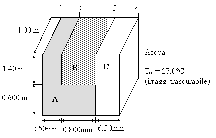 aria a 5,0°C. la parete superiore 1 può considerarsi molto sottile, così come
