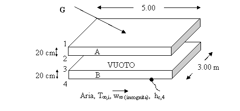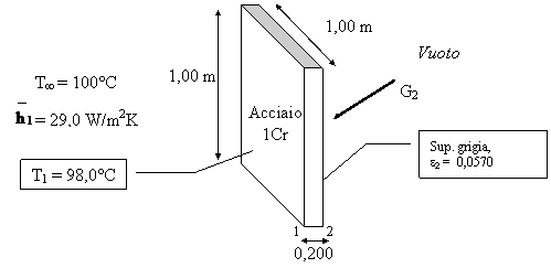 - le sup. 1 e 2 sono piane, indefinite e grigie, e sono separate dal vuoto: la loro emittenza è pari a 0,280;