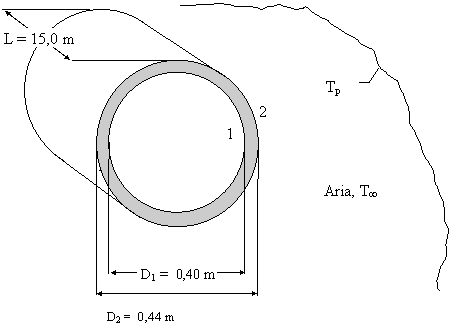 2,0 bar, attraversa un vasto ambiente, con aria stagnante alla temperatura T =
