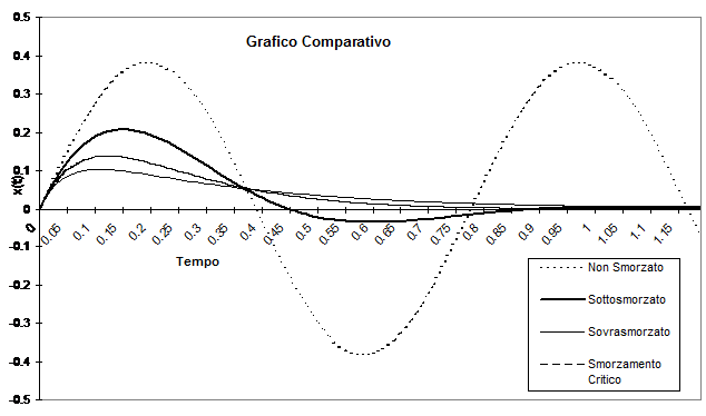 Nei grafici seguenti sono riportati gli andamenti delle funzioni xgen(t), xpart(t) e x(t); come si può osservare, il contributo del termine xgen(t) tende ad annullarsi con il trascorrere del tempo.