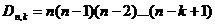 TEOREMA - Il numero di disposizioni semplici di n elementi (distinti), della classe k, è uguale al prodotto di k numeri interi, decrescenti, dei quali il primo è n; cioè: