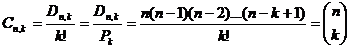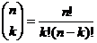Questa formula dà il numero delle combinazioni semplici di n elementi, presi a k a k. L'ultimo simbolo si legge "n su k" o "n sopra k" in cui, n si dice ordine e k si dice classe (o indice).