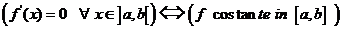 Sappiamo che ogni funzione costante in un intervallo è derivabile ed ha derivata identicamente nulla. Viceversa, mediante il teorema di Lagrange, si dimostra il seguente:
