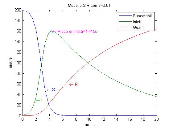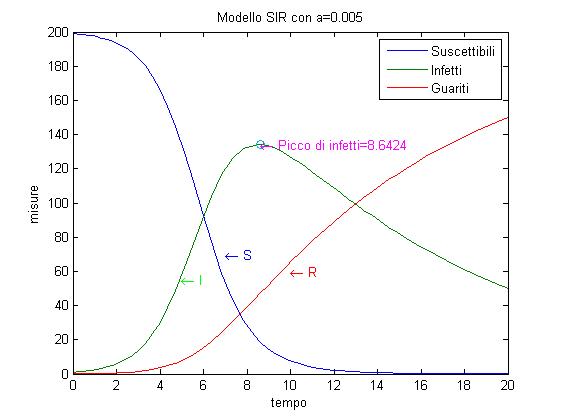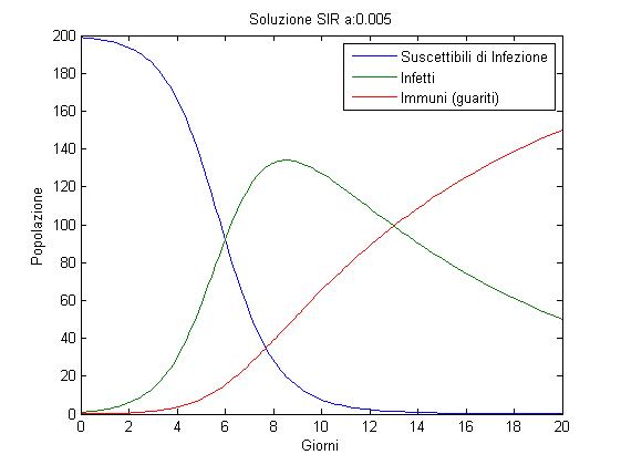 Figure Modello SIR di una epidemia con sostante di contagio pari a 0.005