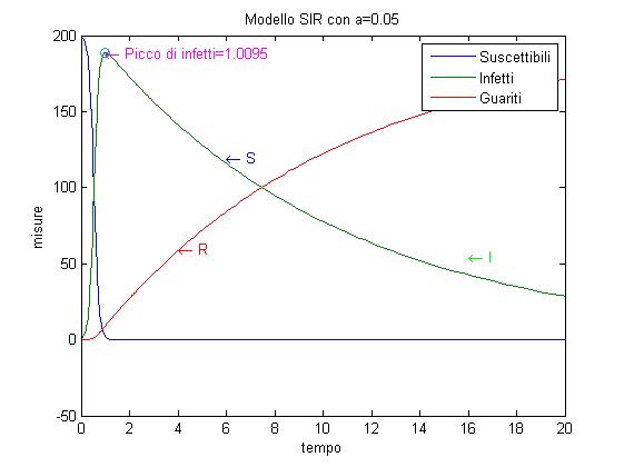 Figure Modello SIR di una epidemia con sostante di contagio pari a 0.05