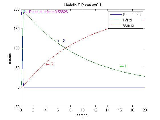 Figure Modello SIR di una epidemia con sostante di contagio pari a 0.1