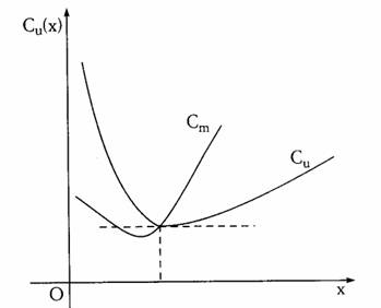 Le curve che rappresentano il costo unitario e il costo marginale si incontrano nel punto di minimo della funzione costo unitario, ossia nel punto in cui è nulla la derivata prima rispetto a x di tale funzione.