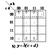 Per la funzione f(a, b, c, d) = Σ(l, 2, 4, 7, 8, 11, 13, 14), avendo posto X1=(a, b) X2 = (c,d). si ha che la tabella ha molteplicità 2 e ponendo y1=0 in corrispondenza delle colonne 00, 11 e y1=1 nelle altre, si ha (fig. 12.2):