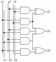 Si noti che ciascuna yi può essere decomposta in funzioni componenti e che due distinte yi possono contenere una identica funzione componente. Ciò indica che una medesima porta concorre a determinare il valore di due distinte variabili di uscita. Se è ad esempio