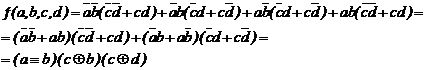 Poiché la f è la funzione di parità delle variabili a, b, c, d,