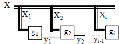 Particolarmente interessanti sono le decomposizioni ottenute nella forma di fig. 12.1, nelle quali la f(X) viene realizzata mediante una 'cascata' delle funzioni componenti gi, date da