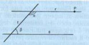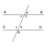 La retta GF interseca le altre due rette, AB e CD. Essa forma con queste coppie di angoli interni, che sono appunto α, β, γ e δ. Se la somma degli angoli di una delle due coppie fosse minore di 180°, allora le rette AB e CD opportunamente prolungate si intersecheranno.