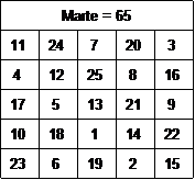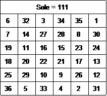 Infine, si deve verificare che ogni fila, colonna e diagonale diano come somma algebrica lo stesso numero, in questo caso 65.