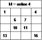 Disponiamo nel loro ordine naturale i primi 16 numeri. Lasciando poi al loro posto i numeri delle diagonali, permutiamo fra loro gli altri otto con i rispettivi simmetrici rispetto al centro del quadrato.