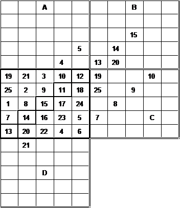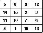 Tutti i numeri sono scritti nell'ordine da sinistra a destra attraverso ogni riga. I numeri allora sono mantenuti nello stesso posto o sono interscambiati con i loro numeri diametralmente opposti in un determinato modello normale. Nel quadrato magico di ordine quattro, i numeri nei quattro quadratini centrali e nei quadratini ad ogni angolo sono mantenuti nello stesso posto e gli altri sono interscambiati con i loro numeri diametralmente opposti.