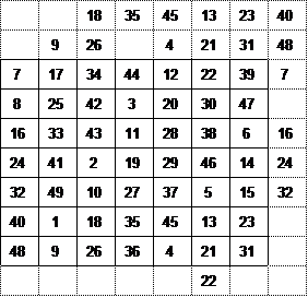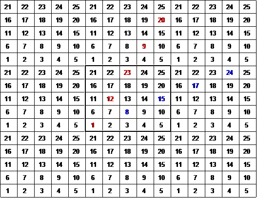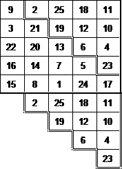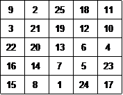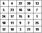La seguente tabella di formule aiuta la costruzione di quadrati magici di ordine dispari