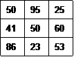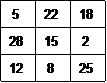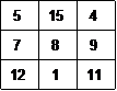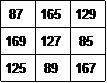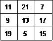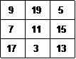 Ad esempio diamo alle costanti i seguenti valori x = 3, a = 1 e b =5. Ne consegue quindi che c = 2x5-1 = 9. In questo modo potremo costruire il seguente quadrato.