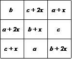 Costituenti tre progressioni aritmetiche di ragione x, i cui primi termini siano a, b, c. Avremo, dunque il seguente quadrato: