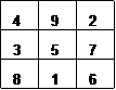 I quadrati magici normali esistono per tutti gli ordini n=1 escluso n = 2, anche se il caso n = 1 è insignificante - esso infatti consiste in una sola casella che contiene il numero 1. Il più piccolo caso non banale, indicato sotto, è di ordine 3.