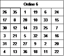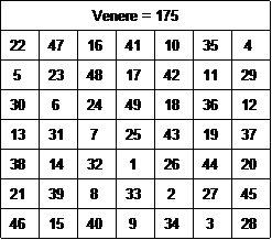 Infine, si deve verificare che ogni fila, colonna e diagonale diano come somma algebrica lo stesso numero, in questo caso 65.