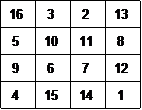 Tutti i numeri sono scritti nell'ordine da sinistra a destra attraverso ogni riga. I numeri allora sono mantenuti nello stesso posto o sono interscambiati con i loro numeri diametralmente opposti in un determinato modello normale. Nel quadrato magico di ordine quattro, i numeri nei quattro quadratini centrali e nei quadratini ad ogni angolo sono mantenuti nello stesso posto e gli altri sono interscambiati con i loro numeri diametralmente opposti.