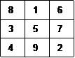 numeri interi distinti in una tabella quadrata tale che la somma dei numeri presenti in ogni riga, in ogni colonna e in entrambe le diagonali dia sempre lo stesso numero; tale intero è denominato la costante di magia o costante magica o somma magica del quadrato.