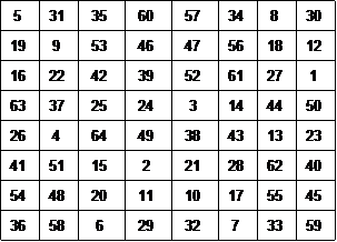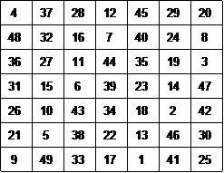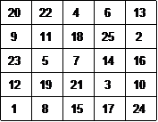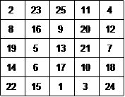 La seguente tabella di formule aiuta la costruzione di quadrati magici di ordine dispari