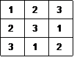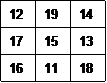e così via. Si può assumere m negativo e di grandezza compatibile con l'ennesimo numero della serie ordinata in quadrato magico per evitare ripetizioni, come ad esempio, nel quadrato sottostante di modulo 3 nel quale r =1 m = -6, e che sarebbe derivato da quello accanto. Evidentemente quello derivato non è altro che il diretto che si sarebbe però ottenuto coi numeri 3, 4, 5, 7, 8, 9, 11, 12, 13 cioè con r =1 e m =2.