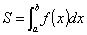 L'area compresa fra la curva e l'asse delle x si chiama integrale definito (o semplicemente integrale) della funzione che rappresenta la curva, calcolato fra i due punti a e b in cui l'area risulta delimitata e si scrive :