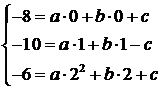 Trovare l'equazione della parabola passante per A(0;-8), B(1;-10), C(2;-6)