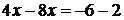 Il primo membro , 4x-8x, si risolve calcolando e lasciando la x come incognita