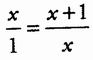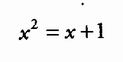 Per fare ciò torniamo alla Figura 1 della sezione aurea; niente ci vieta di scegliere per unità di misura della lunghezza il segmento più breve, CB. La lunghezza del segmento maggiore, AC, sarà quindi x volte CB, dove x è un fattore sconosciuto. Dire che la nostra linea è divisa secondo la proporzione estrema e media equivale, per definizione, ad affermare che x sta a 1 come x+1 (la lunghezza di AB) sta a x. È facile risolvere rispetto a x la seguente uguaglianza: