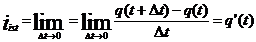 Passando al limite del rapporto incrementale al tendere a zero dell'incremento ∆t, ossia calcolando la derivata della finzione q(t), otteniamo, se il limite esiste, l'intensità della corrente che circola nel conduttore all'istante t:
