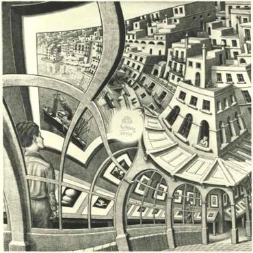 Ma la stampa più ingegnosa può essere considerata: "Esposizione di Stampe" (1956). Giudicando quest'opera secondo i