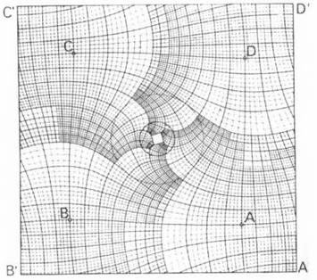 Vediamo come avviene la distorsione: un quadrato posto in A giungerebbe in B