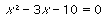 L'equazione scritta qui sopra è verificata solo quando uno dei due singoli fattori è uguale a zero, ovvero quando si ha x = 5 o x = - 2. Per sostituzione nell'equazione assegnata, si può verificare che i due numeri 5 e 2 sono effettivamente le soluzioni cercate.