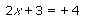 La prima equazione porta alla soluzione x = y. Infatti: 2x + 3 = 4 è equivalente all'equazione 2x = 1 (sottraendo 3 da entrambe le parti), da cui si ottiene x = y. La seconda equazione ha come soluzione x = - 7/2. Come nel caso precedente, è possibile verificare che i valori trovati sono effettivamente le soluzioni cercate, sostituendoli nell'equazione data.