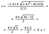 da cui si legge chiaramente a = 1, b = -4 e c = 3; quindi si sostituiscono questi valori nella formula quadratica