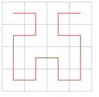 Nel passo successivo, la figura viene costruita replicando per quattro volte l'elemento base riducendone le dimensioni a un quarto delle originali, mantenendo inalterato l'orientamento delle due copie inferiori e ruotando di 90 gradi a sinistra e a destra le due copie superiori. Inoltre, effettuano le connessioni come da figura 2 (le connessioni sono evidenziate in nero)