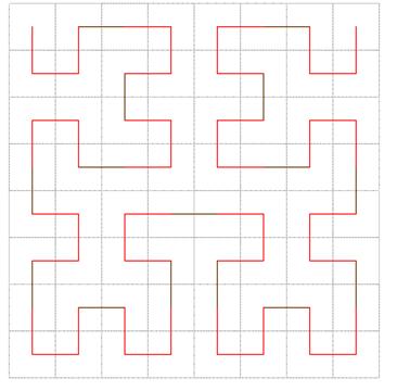 Si osservi che ogni iterazione suddivide il quadrato originario in quadrati di dimensioni più piccole, contenenti repliche in scala della curva del passo base. Questa proprietà è tipica delle curve 'frattali', di cui possiamo trovare ottimi esempi in natura (i profili delle coste, la struttura dei fiocchi di neve, la geometria del fogliame .).