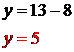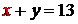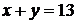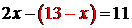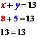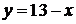 Dall'equazione così scritta si ricava che la y è uguale a 13-x, quindi nella seconda equazione al posto della y possiamo sostituire 13-x. La seconda equazione perciò diventa: