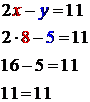 Verifichiamo l'esattezza delle soluzioni sostituendo nella prima equazione ad x e ad y rispettivamente e