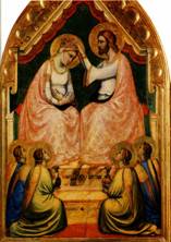 pannello centrale si vede Cristo che incorona la Vergine, con