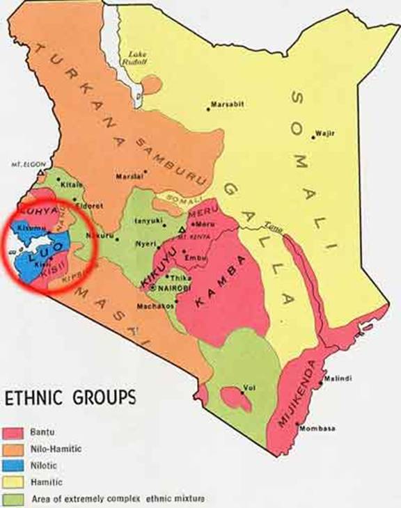 La popolazione è suddivisa in più di settanta etnie, appartenenti a quattro famiglie linguistiche: i bantu, i nilotici, i paranilotici e i cusciti. Un tempo il paese era abitato da gruppi stanziati lungo la costa e, nelle regioni interne, dai Masai, che oggi vivono soprattutto nelle regioni meridionali. Attualmente l'etnia più numerosa è rappresentata dal gruppo bantu dei Kikuyu (21% della popolazione); altri gruppi relativamente numerosi sono i Luhya (14%), i Kamba (11%), tutti di lingua bantu, i Luo (13%), di lingua nilotica, e i kalenjin (11%), paranilotici. Nel paese vivono inoltre esigue minoranze di asiatici, europei e arabi.
